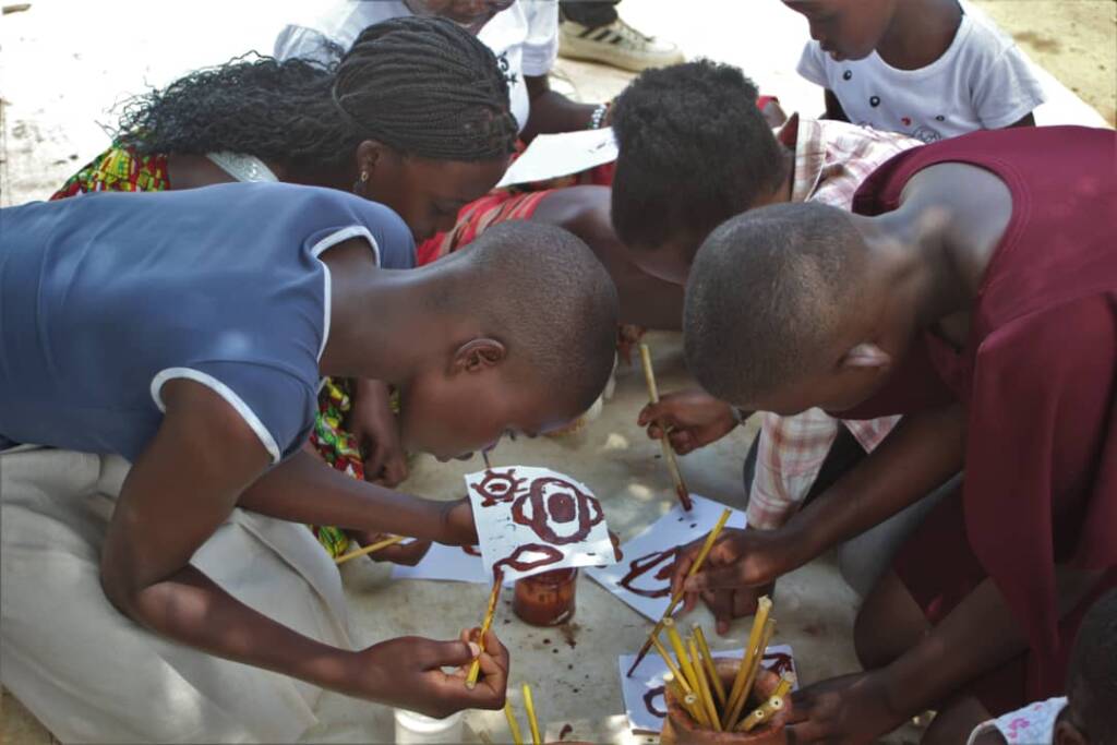 Paintmakers of Lira showing Young Mothers how to Express Themselves Through Painting.